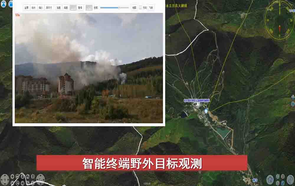森林防火專業(yè)隊伍人員利用智能終端和安裝在終端上的電子地圖測定遠(yuǎn)方熱點的具體位置,得到目標(biāo)點的準(zhǔn)確坐標(biāo)。
